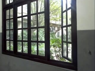 ギャラリーの廊下で小学校の校舎を思い出しました。