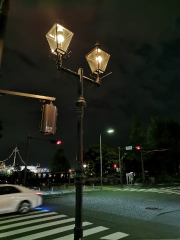 「こないだの山下公園のライトの写真、あれほんとのガス灯みたいだよ」と言い出した。