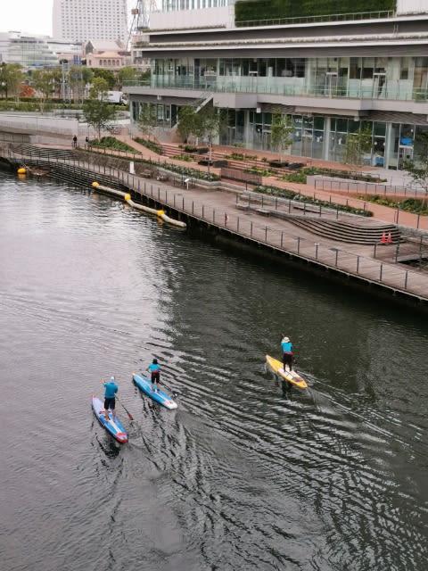 大岡川にはSUP(スタンドアップバドル)を楽しむ人たちが。