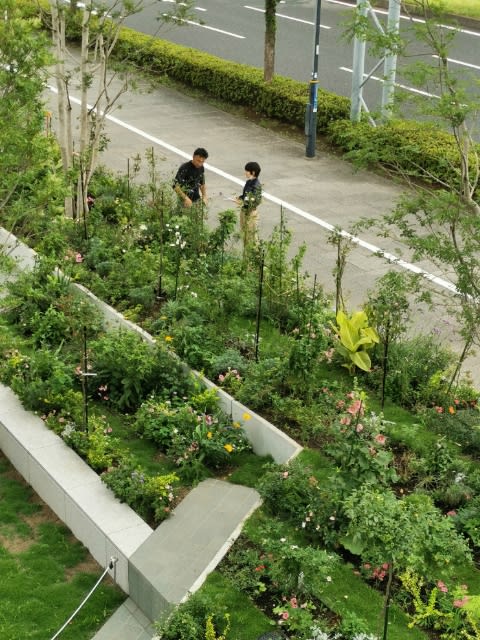 早朝から造園業者でしょうか?植栽のチェック中(?)