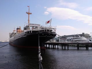 ちょうど豪華客船クイーンエリザベス号が大桟橋に入港中で、大きな船体を見ることが出来ました。上の写真は氷川丸です。クイーンエリザベスの写真は夜でうまく撮れませんでした。