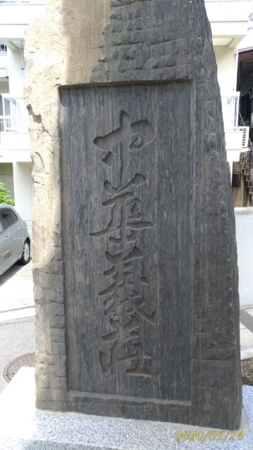 中華義荘が作られた歴史について中国語で記された石碑。