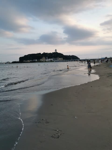 片瀬海水浴場を散歩しながら、江の島を目指します。