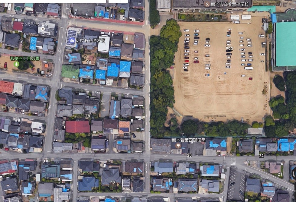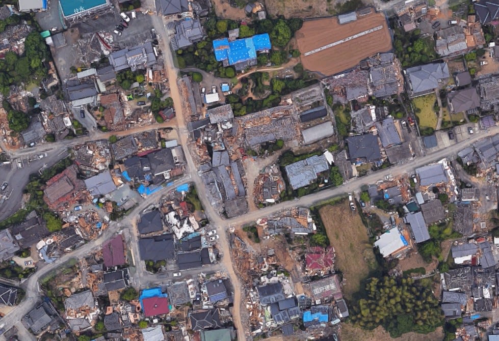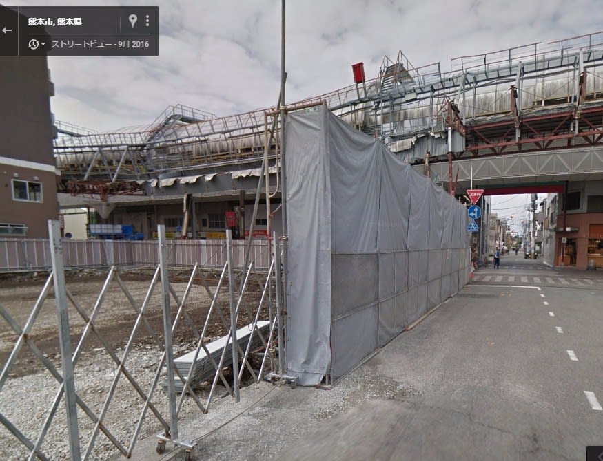 今現在グーグルマップの航空写真やグーグルストリートビューで熊本を見ると、被災直後の様子が見えます。(ストリートビューは去年の9月のもので、航空写真は5~6月位じゃないかと思います)おそらく時がたてば、どんどん更新されていくでしょうから、少し残しておきたいと思います。