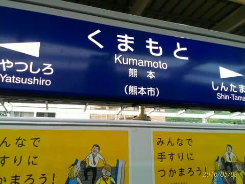 車窓からも、ブルーシートの屋根が見えました。上熊本あたりから地震の被害が感じられました。