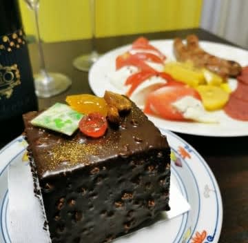 夫の手料理と私の買ってきたケーキとで。