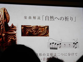 山梨の勝坂土器で、と依頼されたという曲、複雑極まりない土器の文様に大いに悩まれたようですけど、かなりかっこいい曲になっていました。悩んだポイントの説明がいろいろあって、面白おかしく話してくれるので、大いに笑えましたが、これもその一つ。