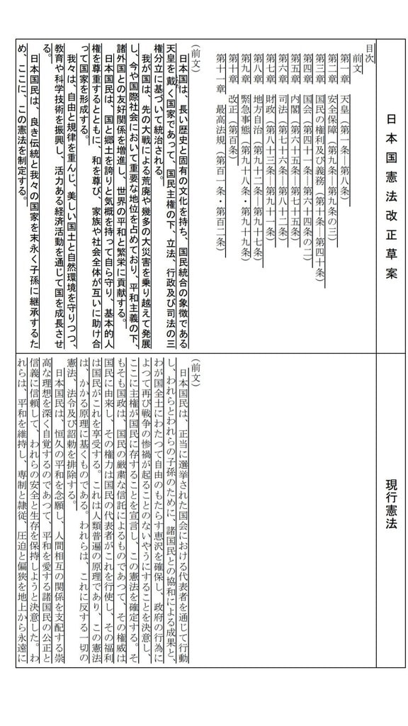初めてじっくりと前文を読ませてもらいましたが、ツッコみどころ満載ですね。ホントに自民党のセンセイがたが考えた案ですか?