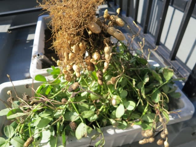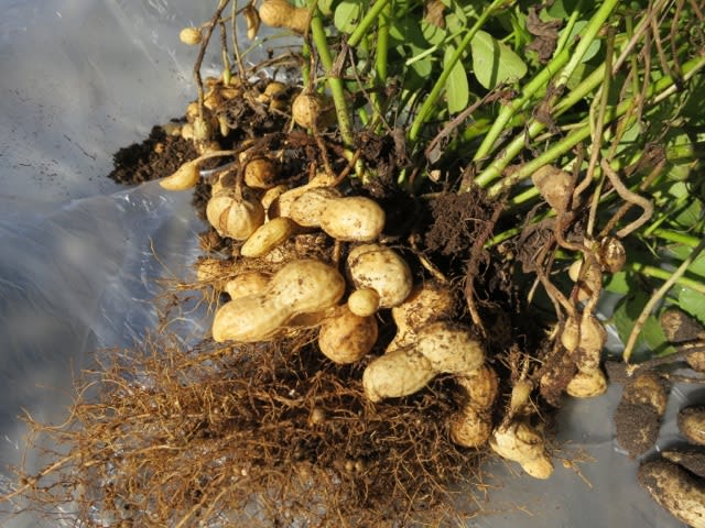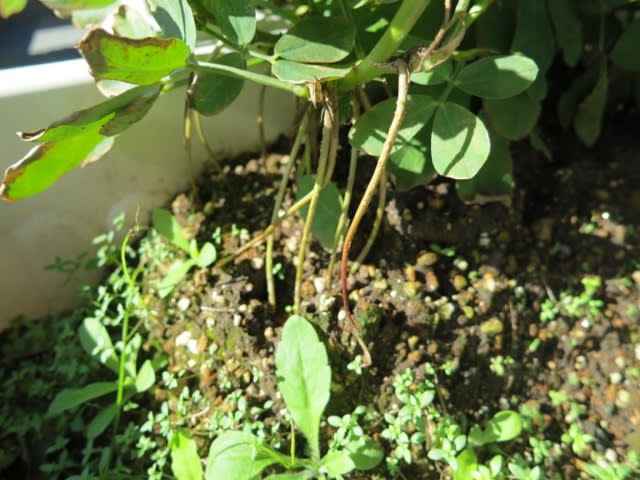9月末、まだ、葉っぱは青々。小さな落花生が出来てました。
