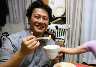 ご馳走(?)作ったのに、カップラーメンを買ってきて食べる蛋蛋・・・・。