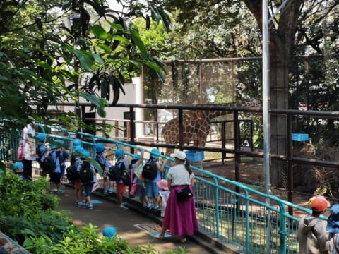 行ってみると、幼稚園生たち何十人かがキリンを見ていました。