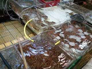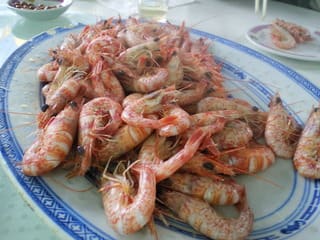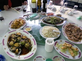買った海鮮(えび、かに、魚、ほたて)をレストランに持ち込み、豪華ランチ!