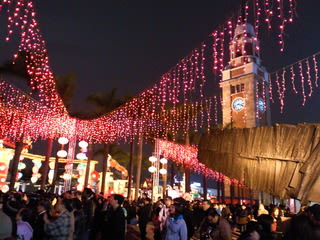 食後、時計台のところでやってる元宵節のお祭りを見ました。