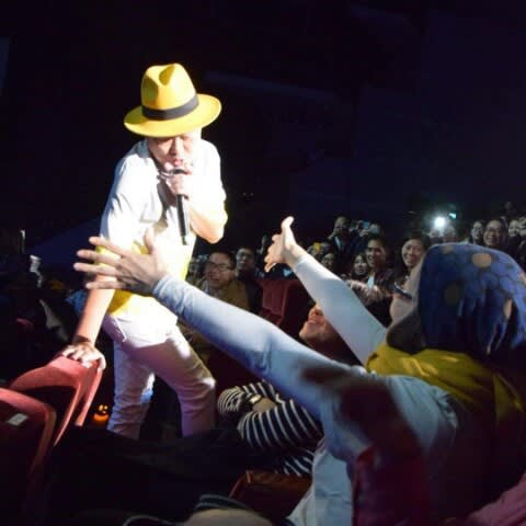 今回のコンサートの構成ではこの歌のときはステージから降りてきて観客の中で歌う演出だった。初日は「アイシテル」は、台湾の観客の隣で歌ったけど、2日目は、明らかに私達日本人が座ってる列まで駆け上がってきて歌ってくれた。