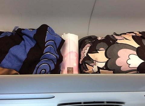 風呂敷にしたのは、月曜朝から仕事場に直行予定なので大きなスーツケースは避けたかったから。