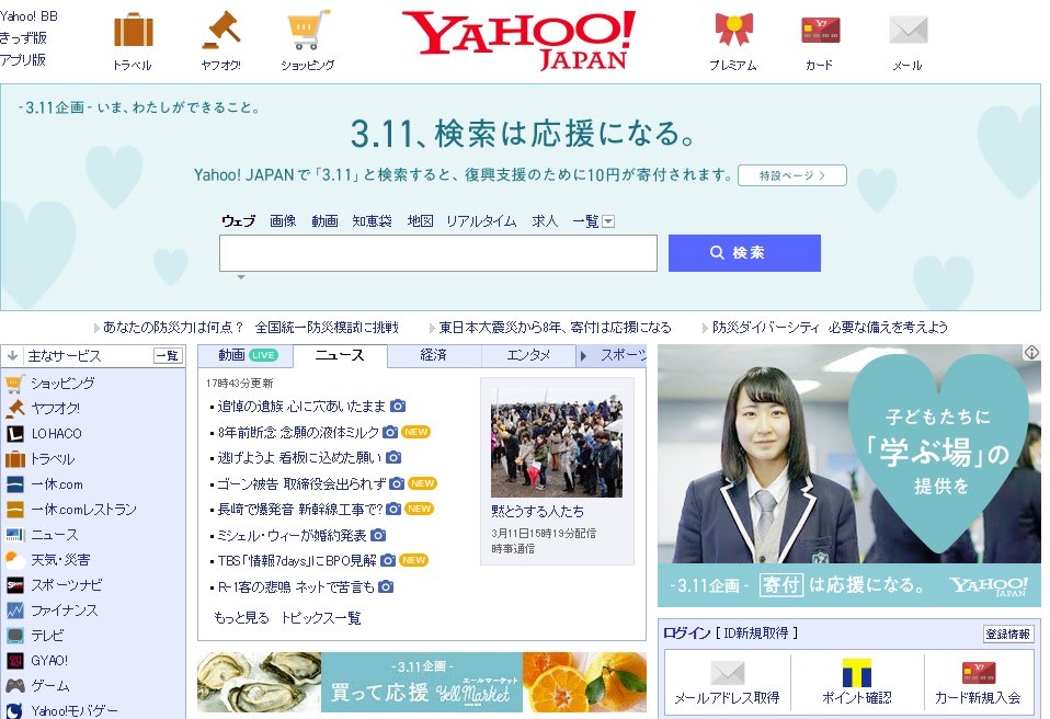 Yahoo! JAPANで「3.11」と検索してみてください。