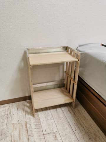 100円ショップで買ってきた材料でベッドサイドテーブルを作ってみようと思います。