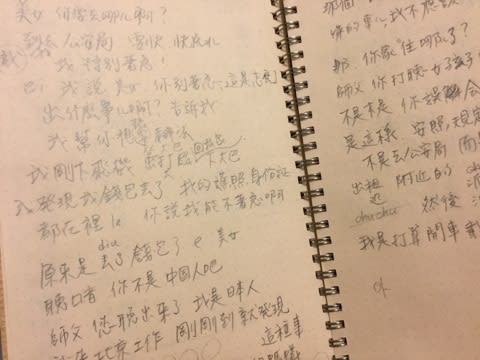 ラジオと違って、ネット放送だと繰り返し聞けるので、途中で止めたりしながら、聞き取ったのをノートに書いてみました。北京が舞台で、私の苦手な大陸のアル化中国語。中検の勉強をやめてから大陸の中国語を聴く機会がほとんどなかったので、新鮮でした。軽声とかすっかり忘れてるので「想想」みたいな簡単なのが聞き取れなかったり。単語もちょっと違います。